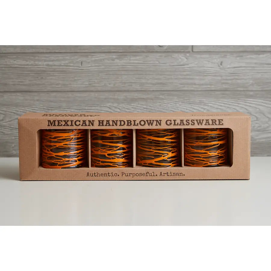 Mexican Handblown Glasses - Orange Swirl